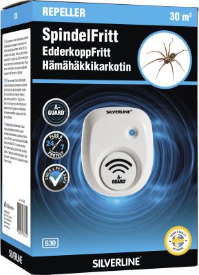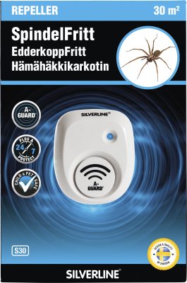 Avskräckare A-Repeller S30 sänder ut ett avancerat ljud med anpassade frekvenser och ett varierat ljudtryck som skrämmer, avskräcker och stör spindlar utan att döda eller använda gifter. Detta stressar dem och skapar en odräglig miljö. Ljudet påverkar inte husdjur eller människor och skapar inte resistens hos de avsedda djuren. Sätts enkelt direkt i vägguttaget. En täckyta på upp till 30m².
