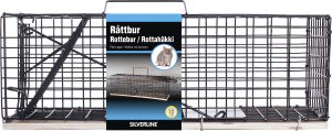 Kraftig metallbur för levandefångst av råttor. Enkel att beta och använda. Kan återanvändas och laddas med många olika beten.